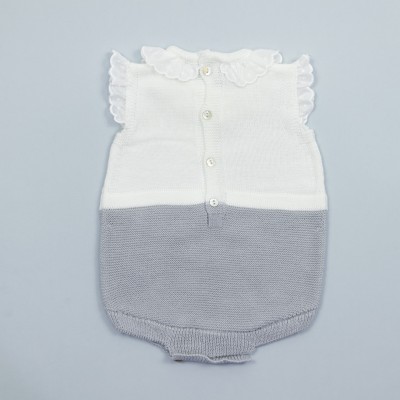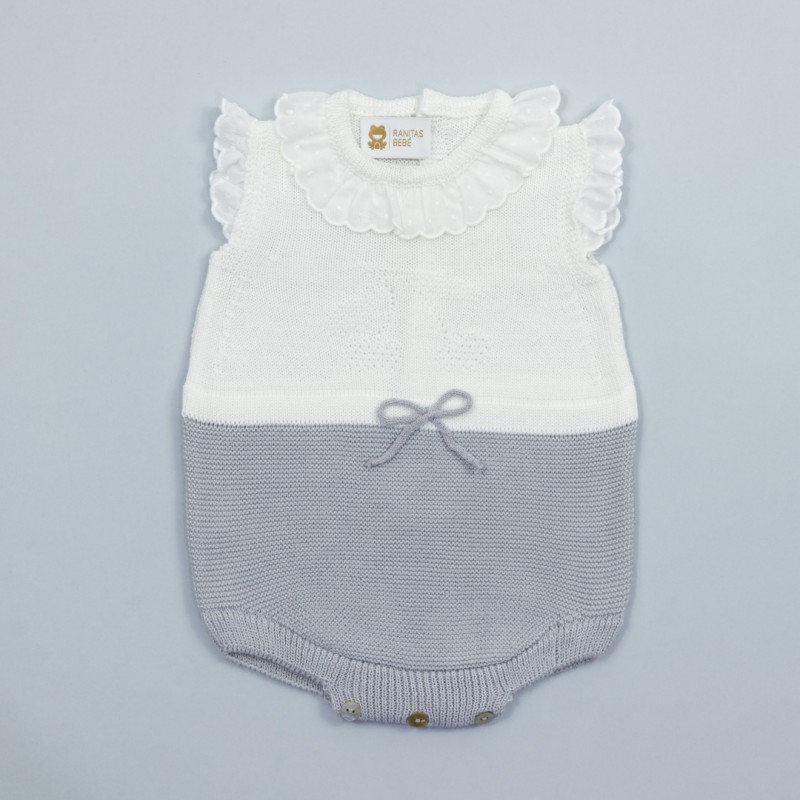 Este pelele de punto está diseñado y confeccionado en España con acrílicos Perlé Dralón, una fibra suave, muy bien tolerada por la piel de los bebés, incluso los de pieles más delicadas.