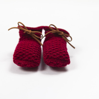 Patuco de lana tejido en punto de arroz color rosa empolvado ideales para primeras posturas en talla 1 que va de 0 meses a 3 meses aproximadamente o en talla 2 que serían de 4 meses a 7 meses aprox.